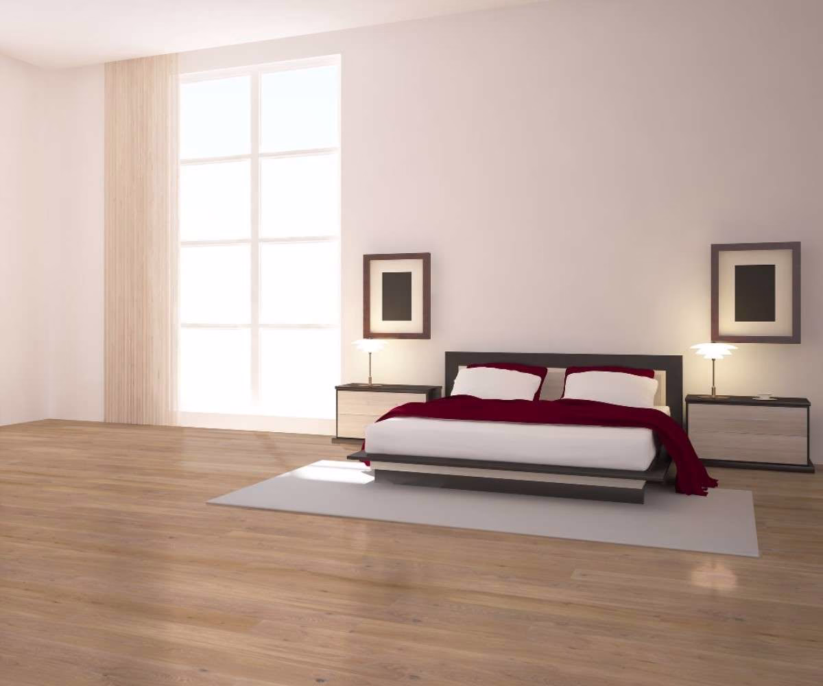 El piso de madera Solidwood Roble Ahumado puede colocarse en dormitorios, livings, playrooms, y salas de reuniones.