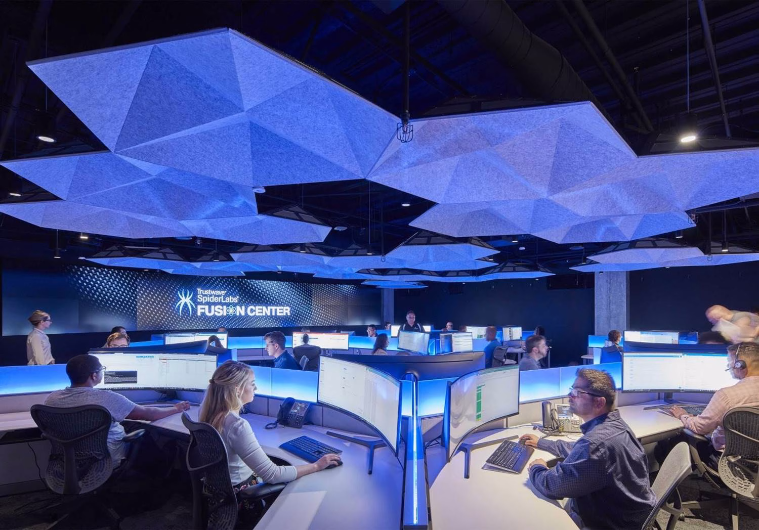 Consiste de un panel 3D modular de forma hexagonal que está disponible en más de 30 colores, que se cuelgan mediante tensores de acero.