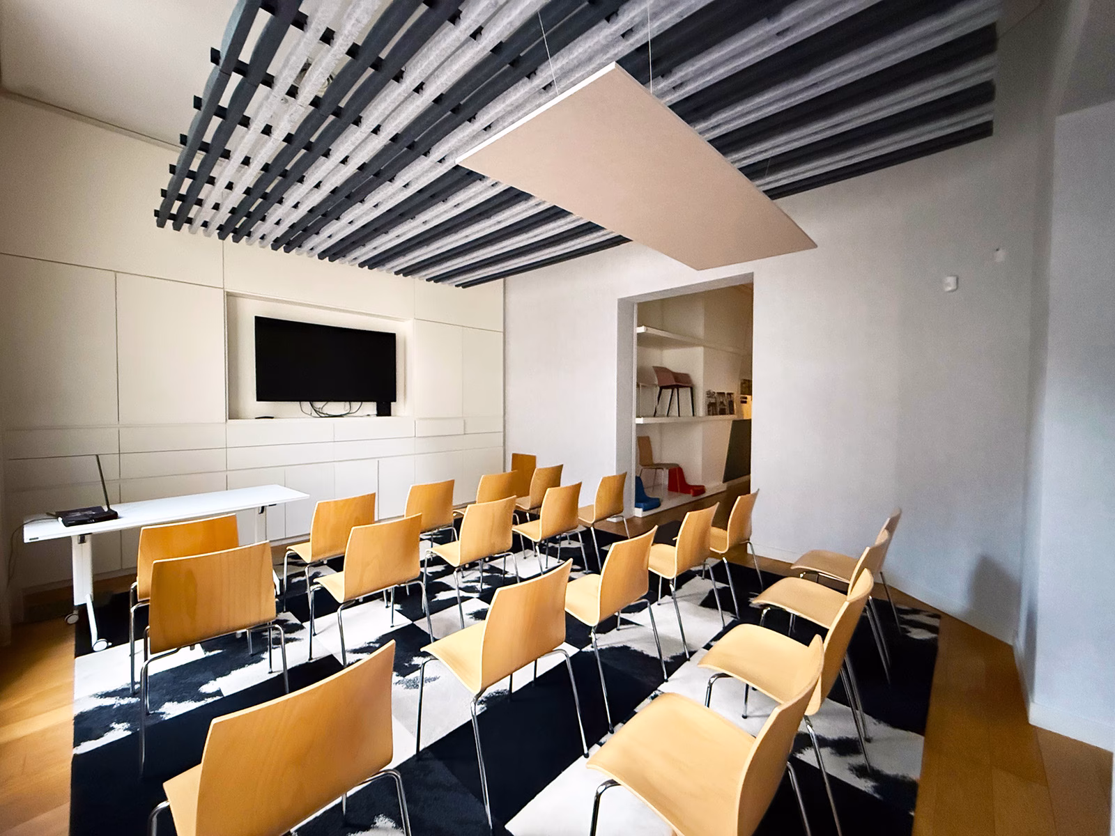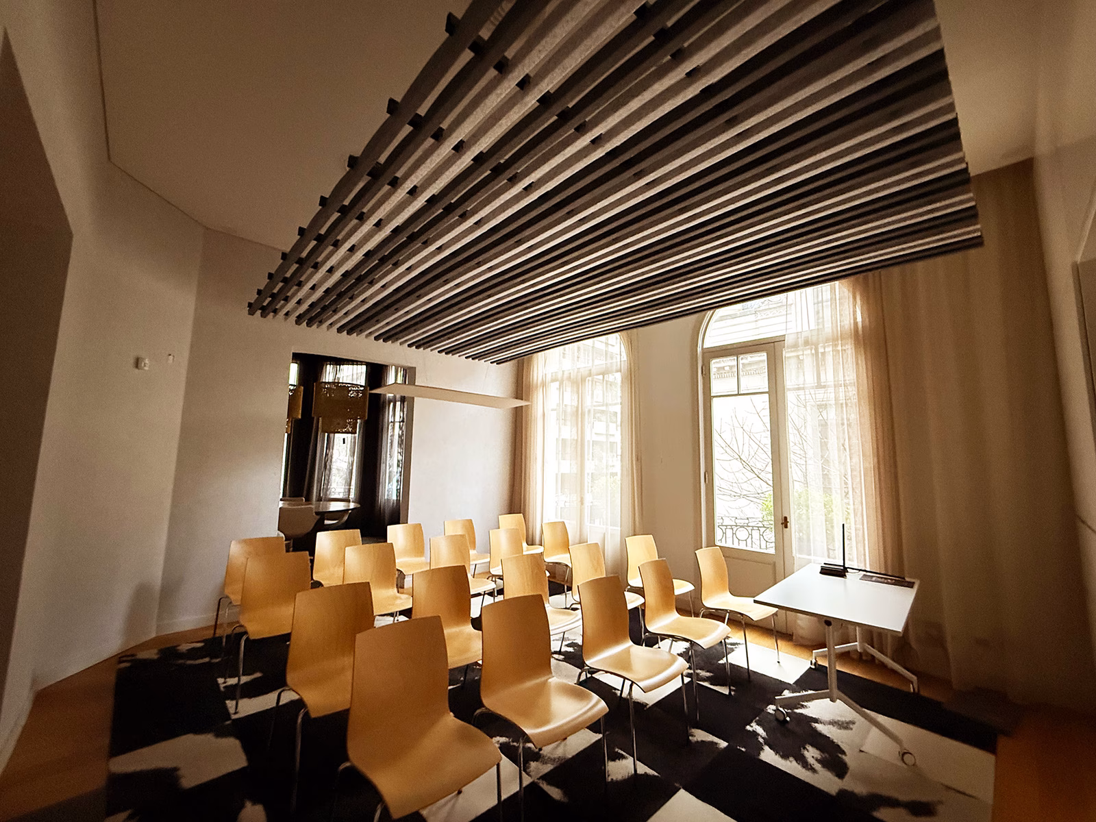 Cielorraso acústico en forma de parrilla