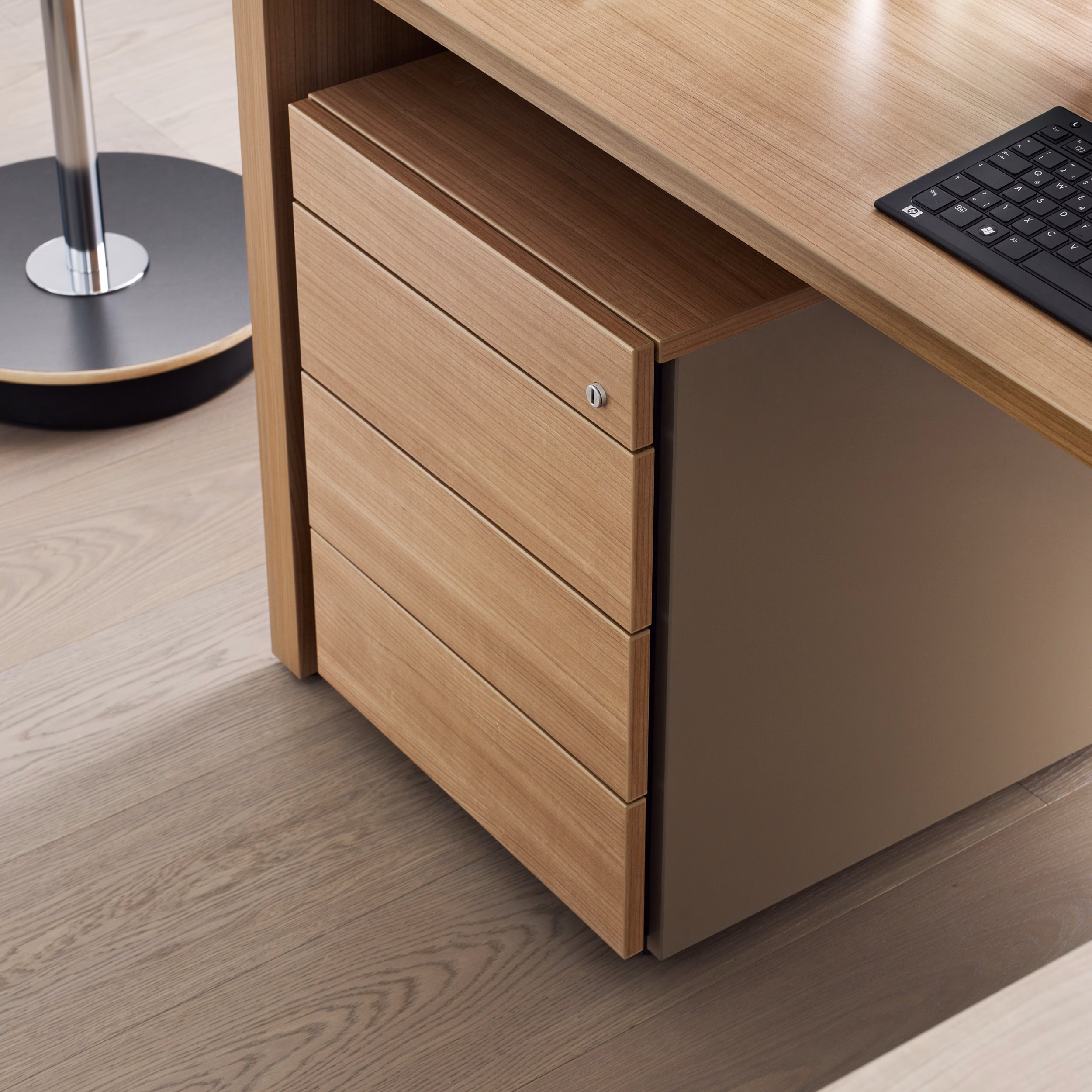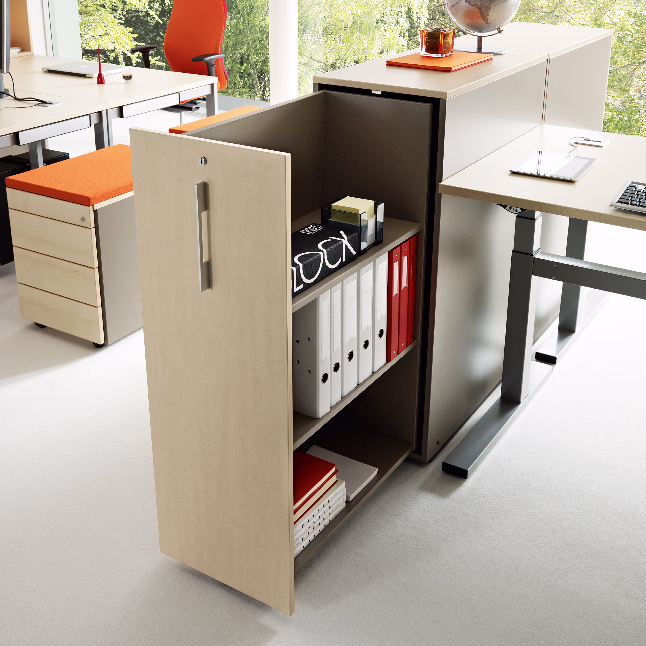 Se integra a la perfección con los puestos operativos SQart, una amplia gama de mesas, bases, y accesorios, que pueden combinarse con archiveros, pedestales y mesas de varios tipos.