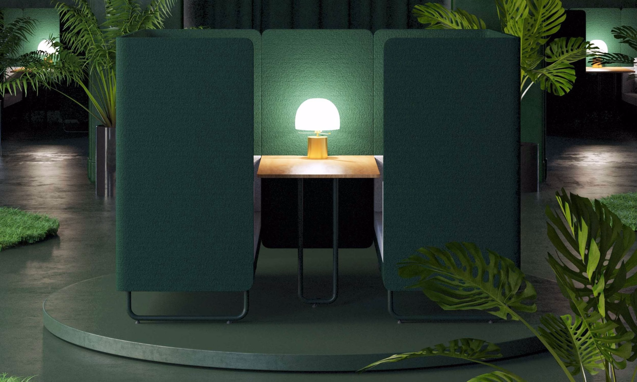 Play & Work es un sistema de espacio colaborativo de Nowy Styl con mamparas altas y tapizadas, que pueden construir un “espacio dentro del espacio”: un área separada cercana al área de trabajo, donde uno puede sentarse a discutir un proyecto con sus colegas en cualquier momento. El sistema es componible a pedido. Gracias a los paneles altos, los sofás tienen una gran superficie de absorción de sonido, lo que puede contribuir a mejorar las propiedades acústicas del espacio. Combina, entre otros con Dotto Ball.