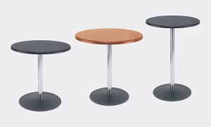 Lena de Nowy Styl tiene un tablero de aglomerado revestido en melamina, laminado o topalit sobre un pie de acero que le da estabilidad.