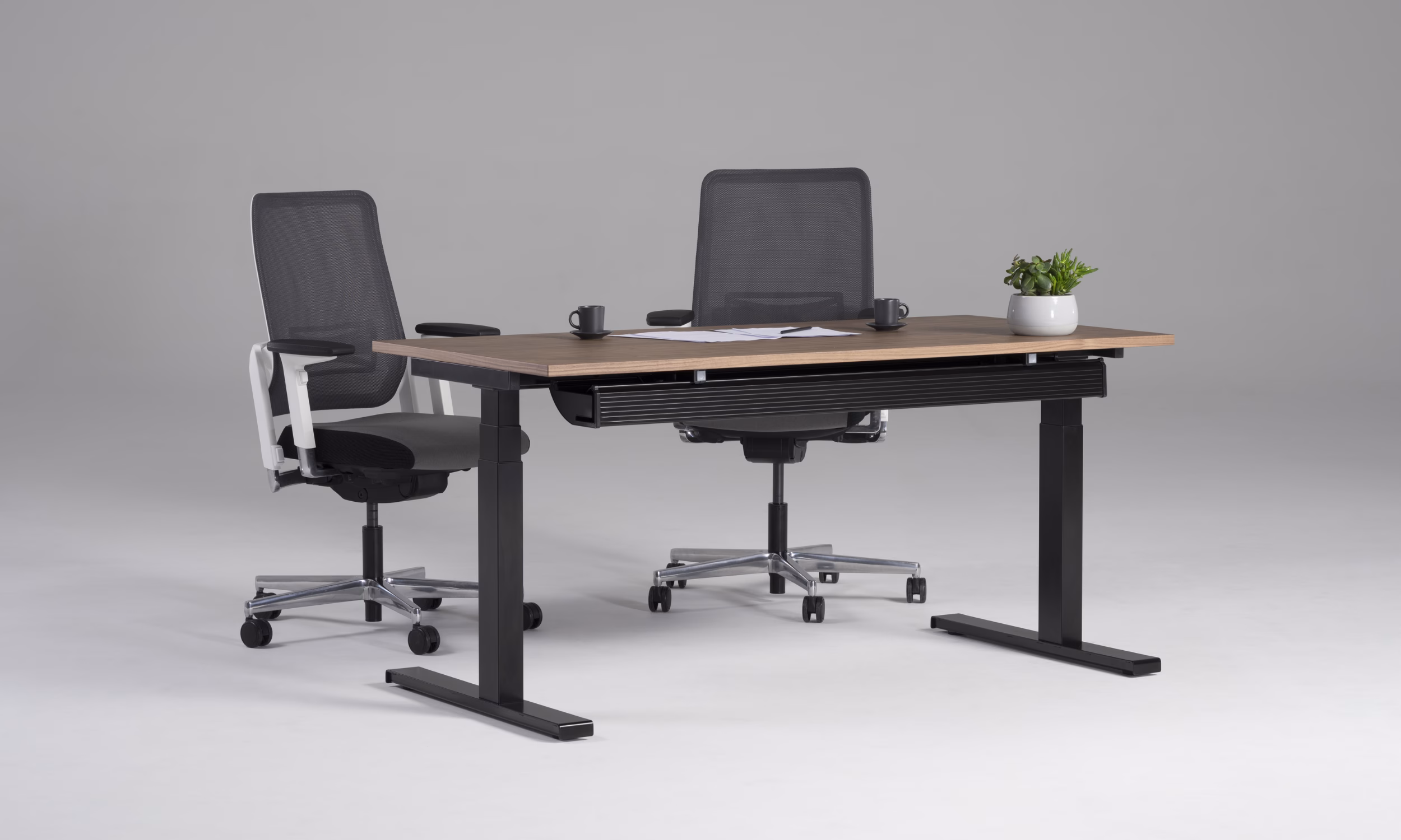 La mesa XIO de Nowy Styl, tiene un gran rango de regulación de altura, puede configurarse para distintos usuarios y también puede manejarse mediante una app en dispositivos móviles. Tiene una amplia gama de terminaciones y superficies. Puede controlarse con una app desde un dispositivo móvil. Para estar de pie, sentarse en sillas operativas, o sobre una silla regulable Timmi.