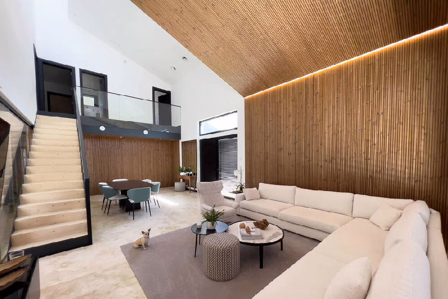 Panel de madera natural termotradada, lo que le confiere estabilidad dimensional garantizada. 100% libre de químicos, y apto para ambientes interiores. Cada panel tiene dos ranuras longitudinales que le da apariencia de estar compuesto por listones. Por lo tanto la instalación es más rápida y sencilla que la de listones individuales. Libre de resinas, aún a temperaturas altas.