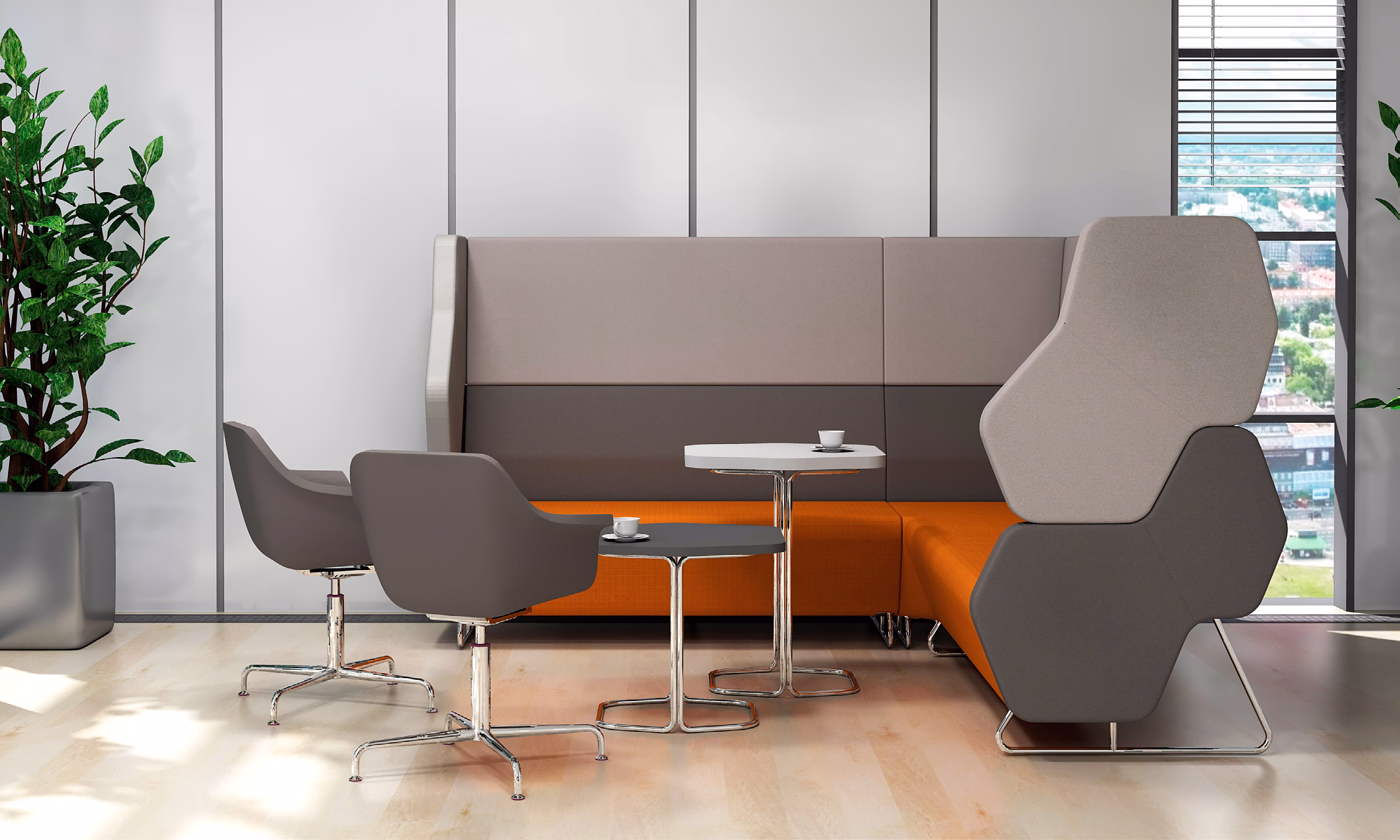 La forma de tulipán de Kaika de Nowy Styl es una invitación al mundo de la naturaleza. Fue la propia naturaleza la que nos dio la inspiración para la forma floral de la silla Kaika. Como opción, Kaika puede tapizarse en uno o en dos colores combinados. Se puede combinar con los espacios colaborativos Play & Work.