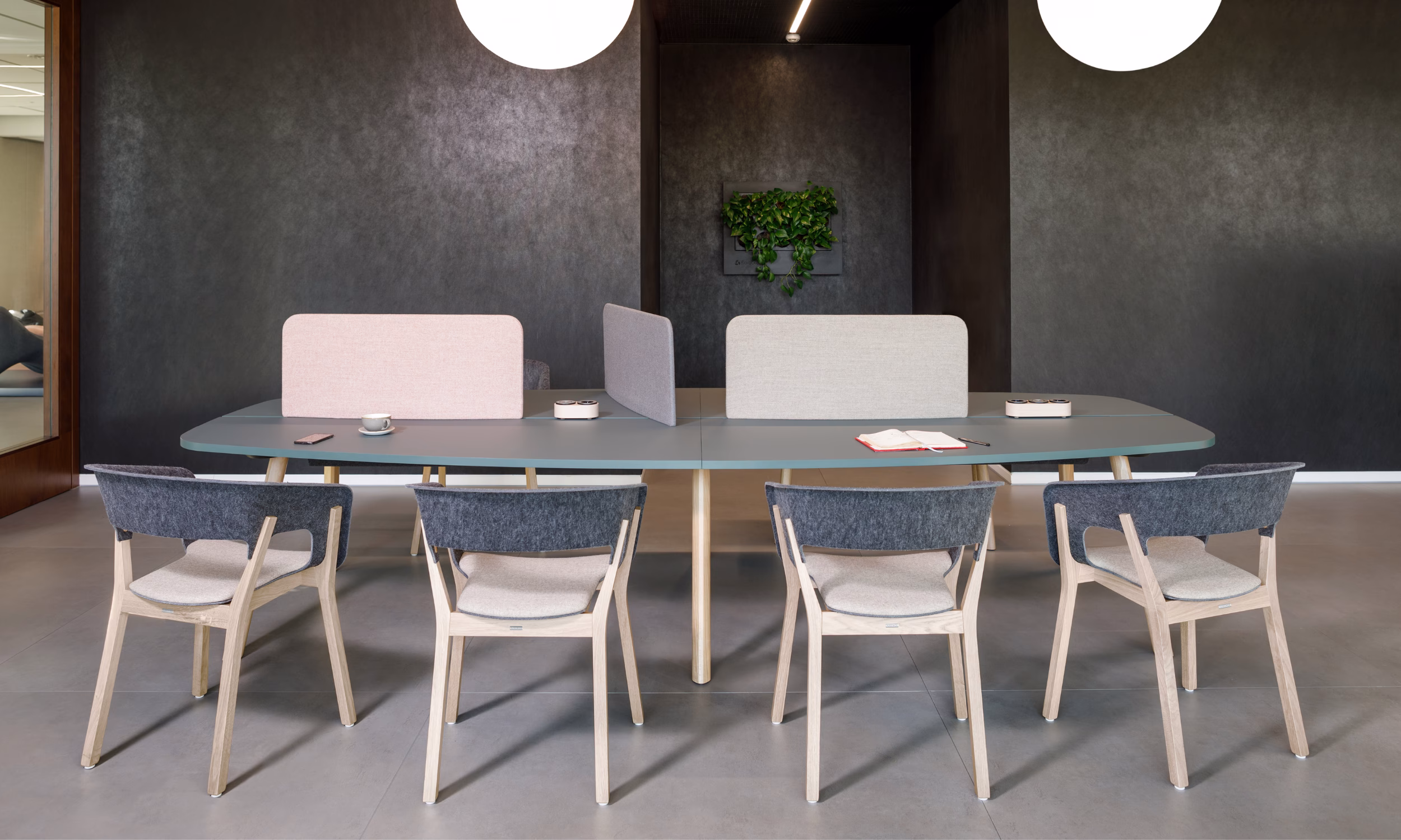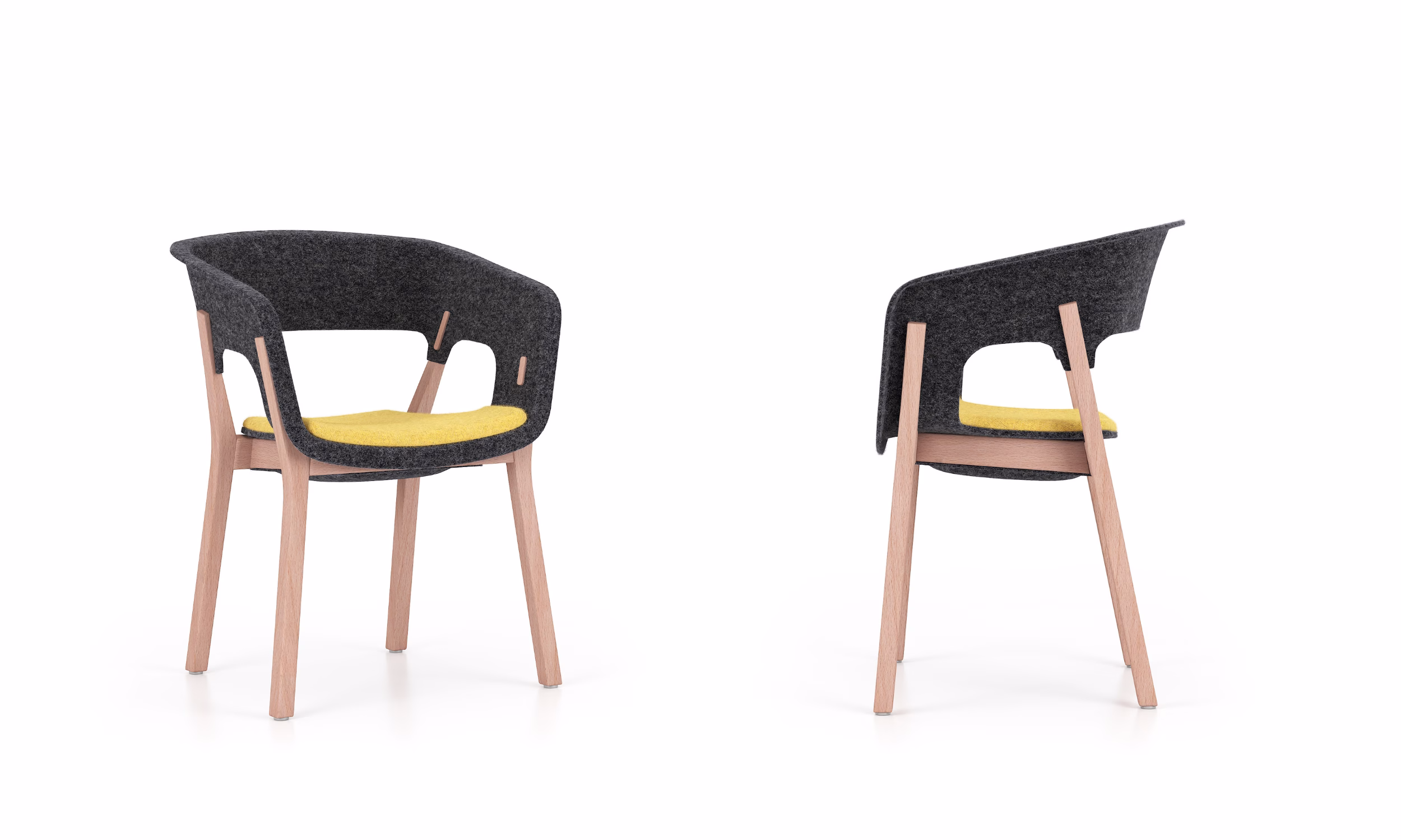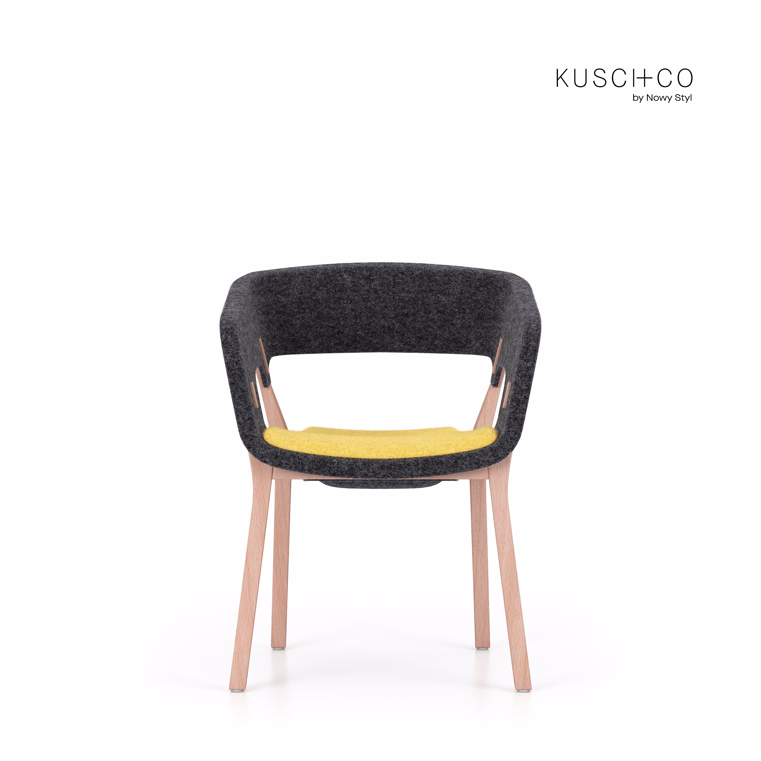 Líneas rectas y curvas delicadas. Salta a la vista que Njord de Kusch es algo excepcional. La base es de madera cruda, que resulta en una estructura en extremo esbelta. El casco, hecho de fieltro de poliéster termoformado de color antracita, seduce con su diseño orgánico y su suave textura. Cuatro reconocidos premios internacionales de diseño son amplia evidencia de que Njord de Kusch está en un nivel superior. Combina con los espacios colaborativos Tepee.