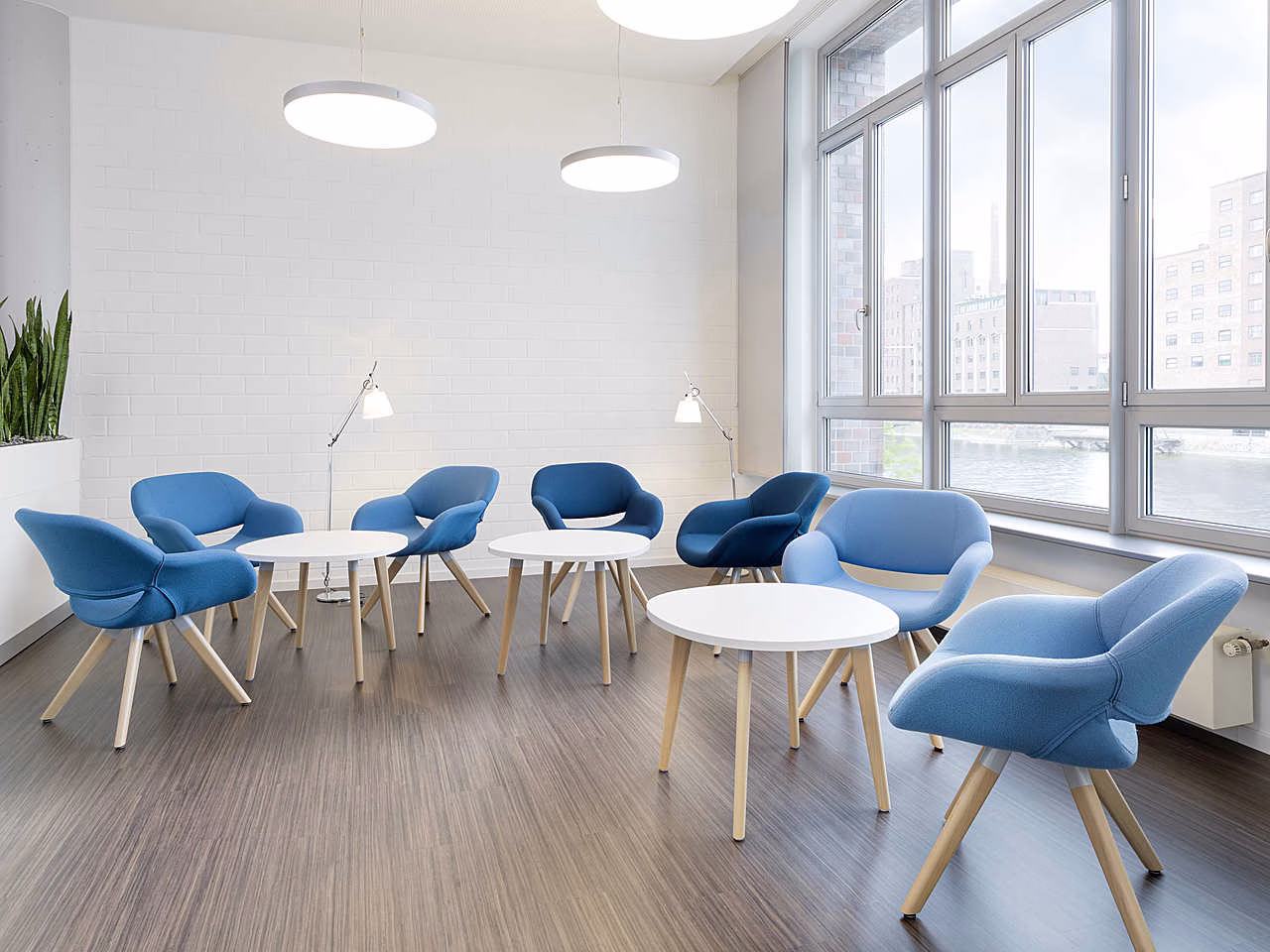 Volpe de Kusch consiste en un asiento de forma suave y orgánica, con un soporte metálico y patas de madera (haya o roble). El sillón Volpe puede configurarse con respaldo alto y complementarse con un banco. Combina, entre otros, con el sillón Volpino.