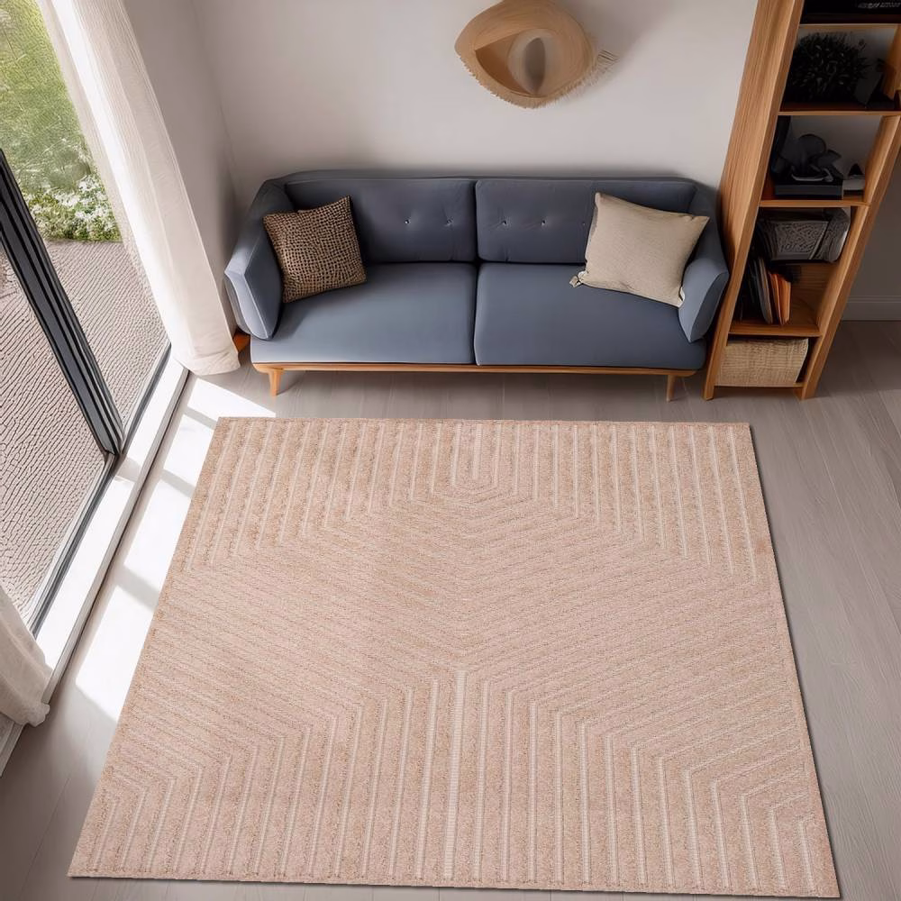 Diseño: Geométrico en relieve realizado en hilado sintético de alta calidad. Colores: Pelo cortado Beige sobre fondo pelo bouclé Beige claro. Tamaños disponibles: Large (2.00 m x 2.80 m). Base: Hilado natural Espesor: 7 mm Código de Colección: Chiara 54002 J Colección Kalpakian Chiara: Alfombras que Transforman tus Espacios. Diseños modernos y colores en tendencia se combinan en estas alfombras de hilado sintético de alta calidad con base natural. Las texturas en pelo cortado y bouclé crean un efecto de…
