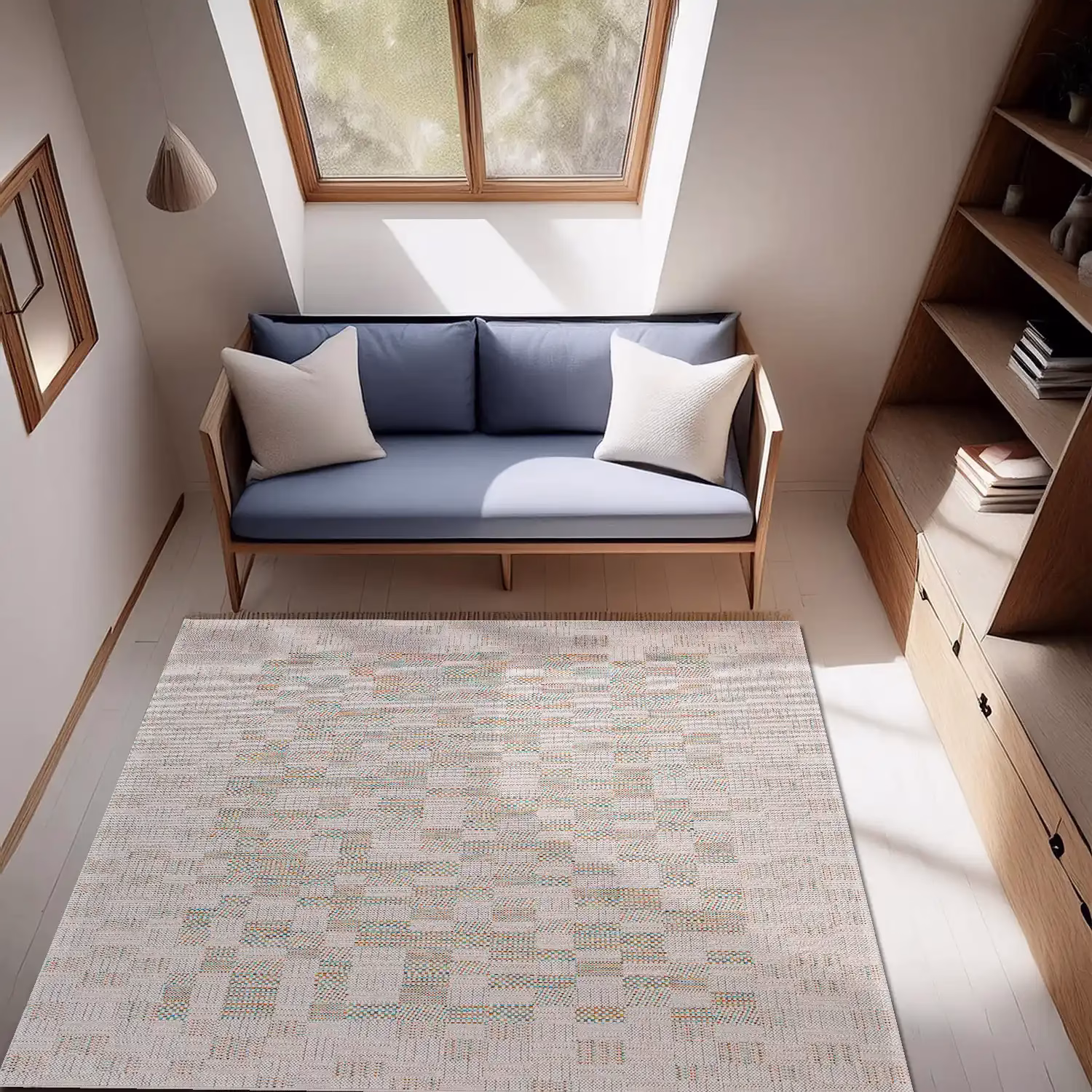 Apta para interiores y exteriores. Resiste mojaduras. Diseño: Geométrico realizado en hilado sintético de alta calidad. Colores: Pelo bouclé que combina hilados crudo, beige, visón y celeste. Tamaños disponibles: Medium (1.60 m x 2.30 m) y Large (2.00 m x 2.90 m). Base: Hilado Sintético Espesor: 6 mm Código de Colección: Crete 55002 Colección Kalpakian Creta: Diseño y durabilidad en perfecta armonía Descubrí alfombras para todos tus ambientes en la colección Kalpakian Creta. Nuestras alfombras, tejidas con hilados sintéticos de…