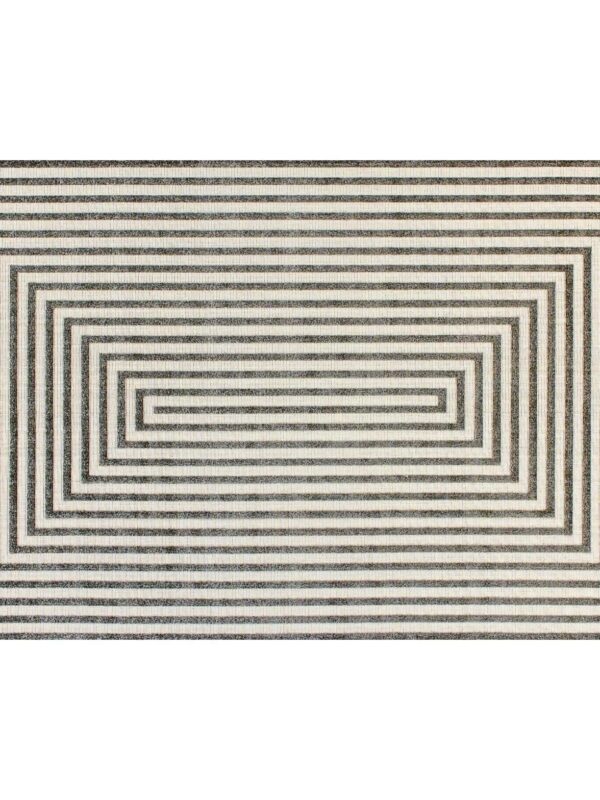 Fabricada con hilado 100% polipropileno, pelo bouclé en gama de grises.