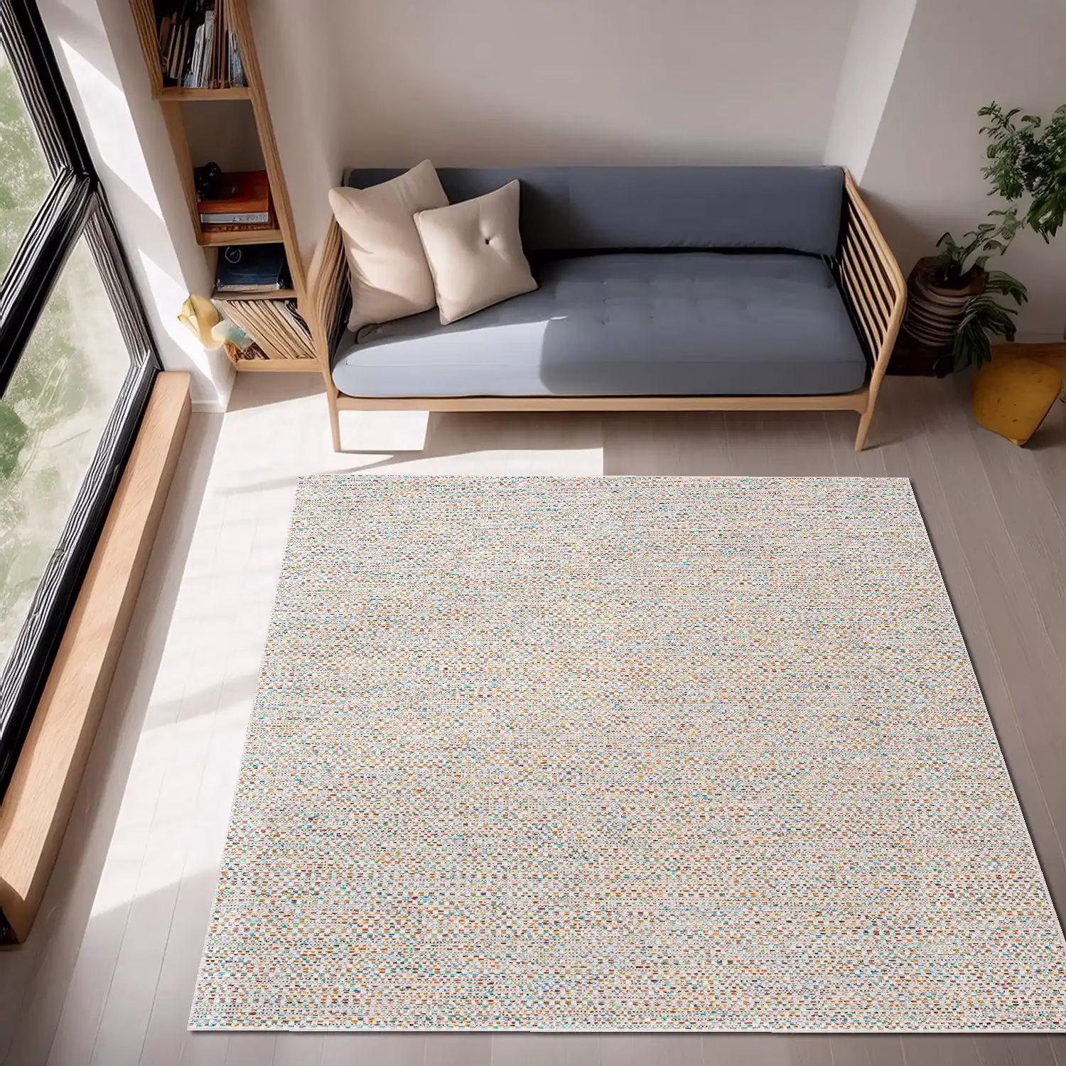 Apta para interiores y exteriores. Resiste mojaduras. Diseño: Geométrico realizado en hilado sintético de alta calidad. Colores: Pelo bouclé que combina hilados crudo, beige, visón y celeste. Tamaños disponibles: Medium (1.60 m x 2.30 m) y Large (2.00 m x 2.90 m). Base: Hilado Sintético Espesor: 6 mm Código de Colección: Crete 20522 Colección Kalpakian Creta: Diseño y durabilidad en perfecta armonía Descubrí alfombras para todos tus ambientes en la colección Kalpakian Creta. Nuestras alfombras, tejidas con hilados sintéticos de…