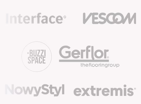 Representamos en el Cono Sur a referentes mundiales como: Interface (alfombras y pisos modulares), Vescom (revestimientos de pared), Gerflor (pisos vinílicos y soluciones resilientes), Extremis (mobiliario de exterior con enfoque funcional y humano), BuzziSpace (acústica y mobiliario para entornos de trabajo), Nowy Styl (mobiliario corporativo europeo)